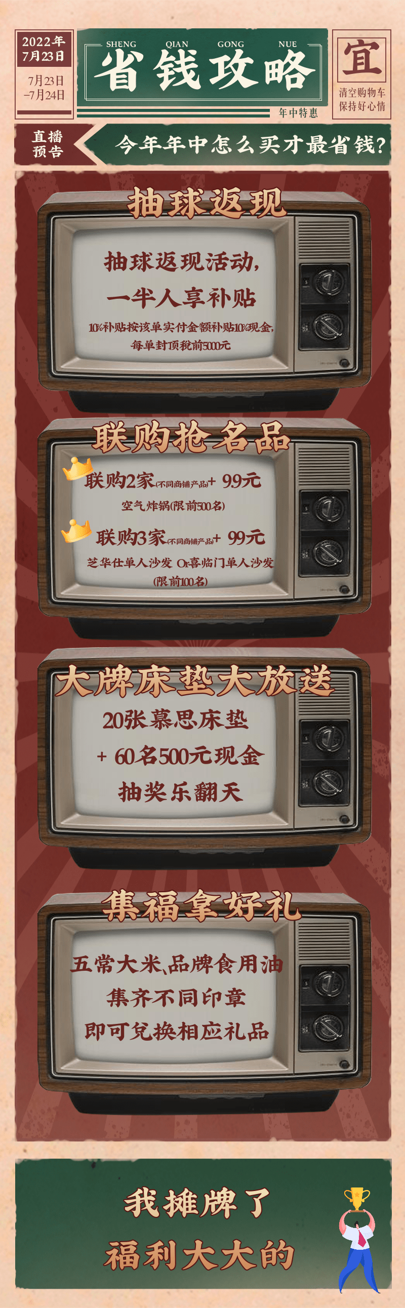 7.23-7.24 9.9元空氣炸鍋 99元 芝華仕/喜臨門單人沙發(fā) 0元抽慕思床墊,一半人享補(bǔ)貼
